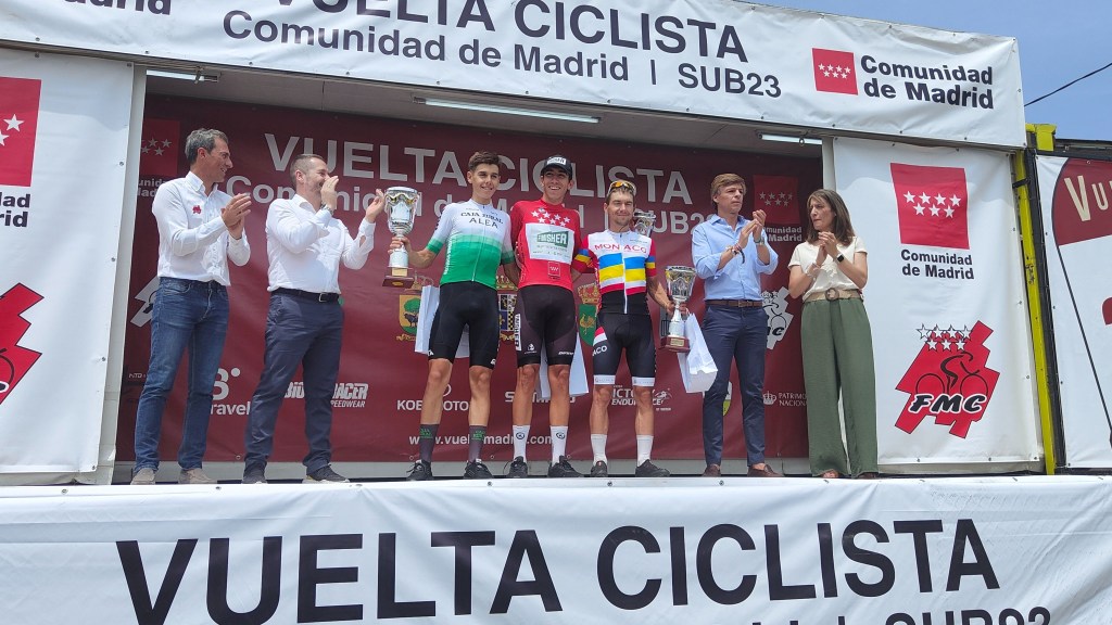 Diego Uriarte (Finisher) ha asaltatado hoy la general de la Vuelta Ciclista a Madrid Sub 23 con un espectacular triunfo en la última etapa con salida y meta en San Lorenzo de El Escorial. El corredor navarro futuro profesional con el Equipo Kern Pharma la próxima temporada, protagonizó una larga cabalgada que le permitió llegar a meta con la suficiente renta sobre el líder como para adjudicarse la clasificación general y arrebatare el maillot rojo al alicantino Jaume Guardeño. Bilyi Makssym (Mónaco), ha entrado segundo, a 58″, y el hasta hoy maillot rojo, tercero, a 1.04.
