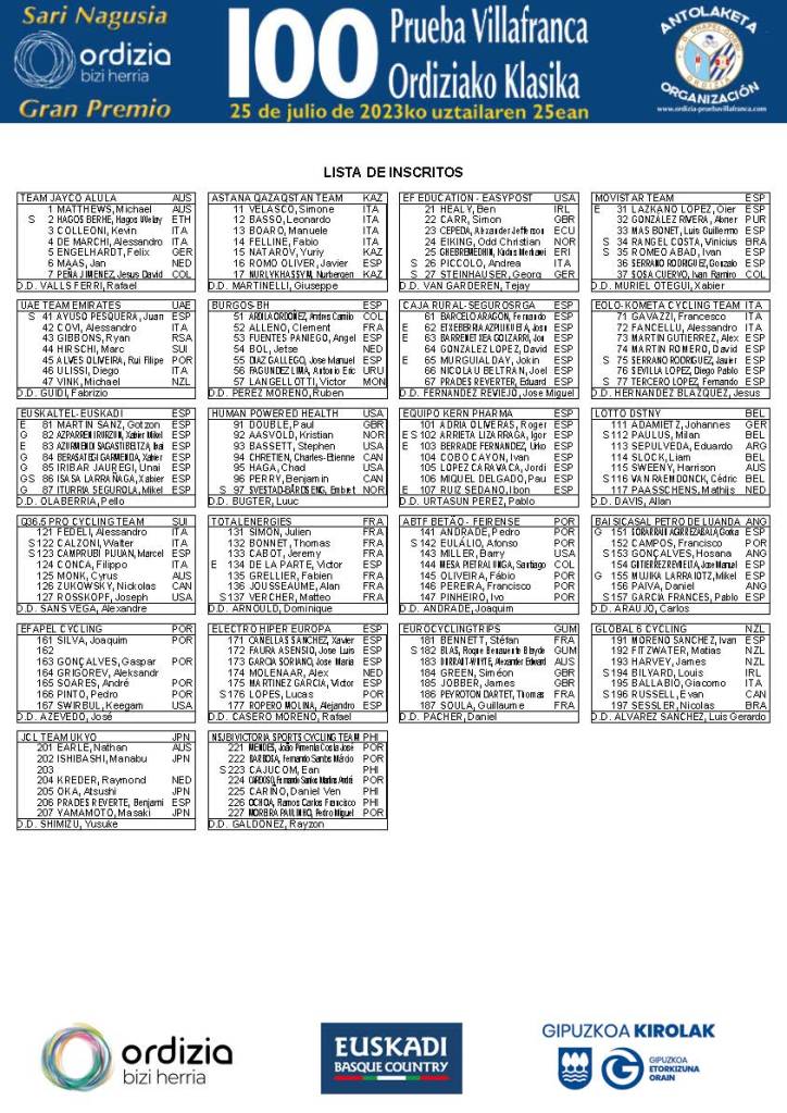 Esta semana de competición en España dará comienzo el martes, día 25 de julio, con la Clásica de Ordizia, prueba que mantiene su tradicional circuito con salida y llegada en Villafranca de Ordizia en su edición número 100. Se darán cinco vueltas a un bucle de 32 kilómetros que incluye el ascenso al Alto de Abaltzisketa como principal dificultad montañosa. Además, en los dos últimos giros se añade la subida al Alto de Altzo, que podría romper aún más la carrera. Encabeza el cartel Juan Ayuso (UAE Emirates) de participantes, que será el favorito al triunfo con permiso de Michael Matthews, Ben Healy y Oier Lazkano. El corredor de Xàbia inicia en la carrera su preparación para La Vuelta 2023 en la que tendrá como máximo rival a Jonas Vingegaard, ganador de las dos últimas ediciones del Tour de Francia, que ha anunciado su presencia en la competición española.
