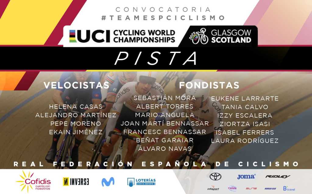 La competición de Pista Élite se desarrollará entre el 3 y el 8 de agosto y en ella el seleccionador nacional Félix García Casas contará con un bloque formado por 17 ciclistas, 4 velocistas y 13 fondistas. Helena Casas, Ekain Jiménez, Alejandro Martínez y Pepe Moreno formarán el grupo de velocidad; mientras que el de fondo estará integrado por Sebastián Mora, Albert Torres, Beñat Garaiar, Álvaro Navas, Mario Anguela, Francesc Bennassar, Joan Martí Bennassar, Eukene Larrarte, Ziortza Isasi, Isabel Ferreres, Tania Calvo, Izzy Escalera y Laura Rodríguez.