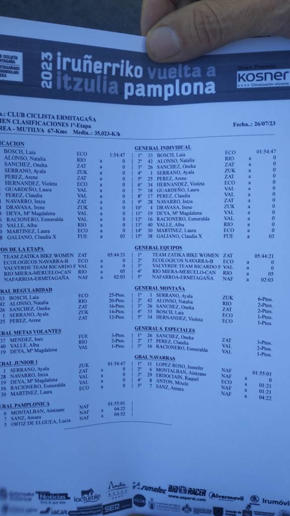 Laia Bosch (Beratxa) se ha adjudicado la primera etapa de la III Vuelta a Pamplona Femenina que ha llevado al pelotón de La Morea a Mutilva, tras 67 kilómetros de recorrido. Natalia Alonso y Oneka Sánchez han completado el podio de la jornada. Con el mismo tiempo de la ganadora han entrada las corredores del Valverde Team Laura Guardeño y Claudia Pérez, en los puestos séptimo y octavo, respectivamente. Claudia Xiangfeng (Fuenlabrada) ha ocupado la plaza 15.