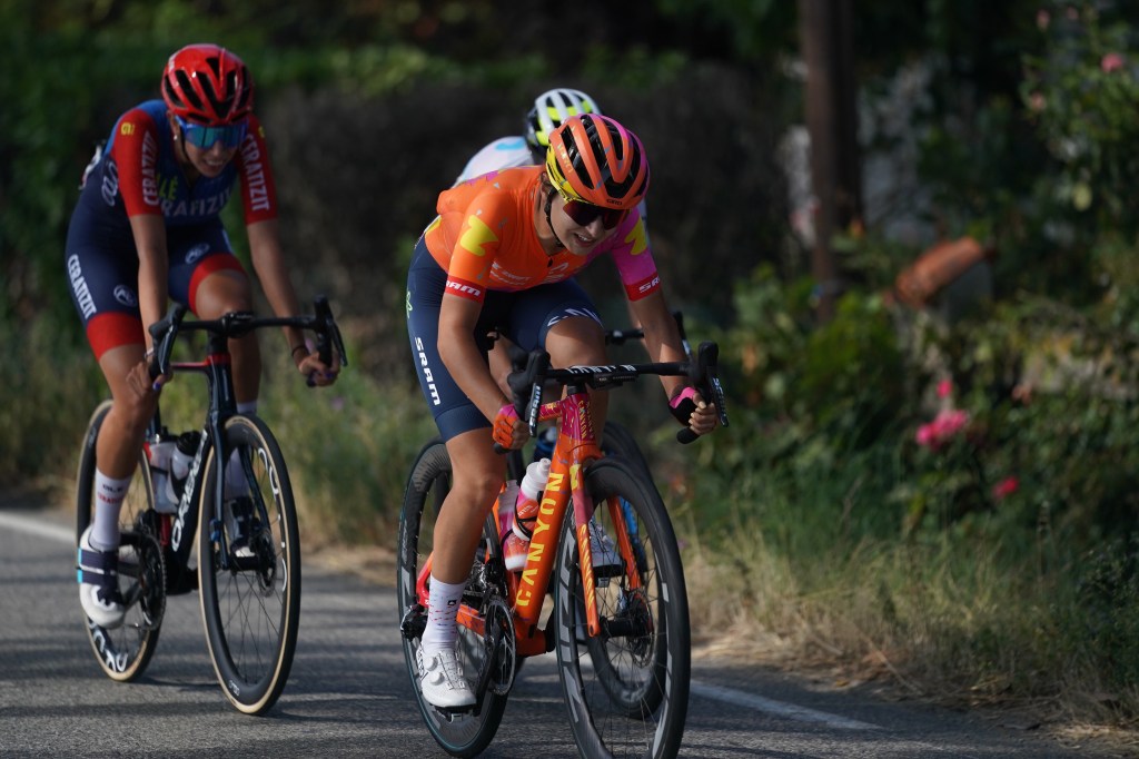A falta de 95 kilómetros Sandra Alonso y Agnieszka Skalniak-Sojka se marchaban en solitario. A pocos kilómetros se uniría Emma Cecilie Norsgaard Jørgensen. Este trío fue manteniendo una ventaja de minuto y medio sobre el pelotón. Y ni siquiera el trabajo de Jumbo Visma, DSM o SD Worx fue suficiente para neutralizar a la escapada que, al ver que la diferencia no bajaba de 20 segundos a 5 kilómetros del final, llevó a la de Movistar Team a realizar un cambio de ritmo que descolgó definitivamente a Sandra Alonso. La victoria, pese al último esfuerzo de Trek, estaría entre danesa de Movistar y Skalniak-Sojka, imponiéndose la primera en los metros final e impidiendo que Kopecky y Vos les llegasen a rueda.