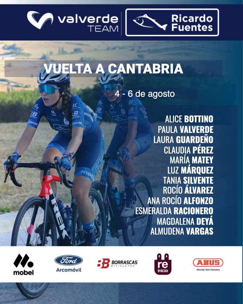 La Vuelta a Cantabria Femenina para las categorías cadete y júnior, que cuenta con el patrocinio del Gobierno de Cantabria a través de la Dirección General de Deporte, se va a disputar los días 4, 5 y 6 de agosto. La Bien Aparecida, el viernes; San Mamés de Meruelo, el sábado; y Muriedas, el domingo serán los finales de esta prestigiosa prueba ciclista en la que habrá una amplia representación de corredoras de la Comunidad. Estaran presentes los equipos International Cycling Academy y Teika-Granja Rinya, con Claudia Castaño, Leyre Almena, Lucía Rodríguez y Candela Cazorla, entre otras, además de las ciclistas del Valverde Team María Matey, Claudia Pérez y Laura Guardeño; y la del Fuenlabrada, Claudia Xiangfeng. Lista de inscritas.
