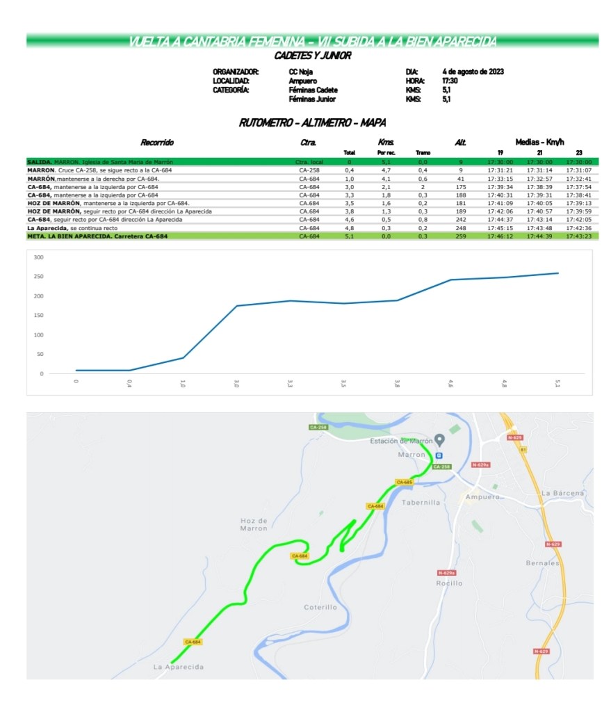Etapa 1. Viernes 4 de agosto. VII SUBIDA BIEN APARECIDA. Ampuero. 17.30h. 5,1Km. Rutómetro.