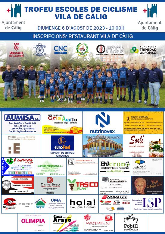 Càlig y Alginet reúnen el domingo, día 6 de agosto, a las escuelas de ciclismo de Castellón y Valènica, respetivamente. El VIII Trofeu Festes Patronals de Càlig dará comienzo a las 10 horas. La prueba está organizada por la UC Benicarló.