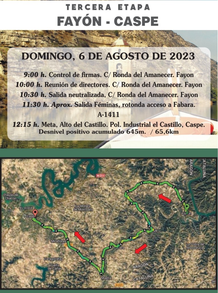 Etapa 3. Domingo, 6 de agosto. Fayon – Caspe. 65km. 10.30horas
