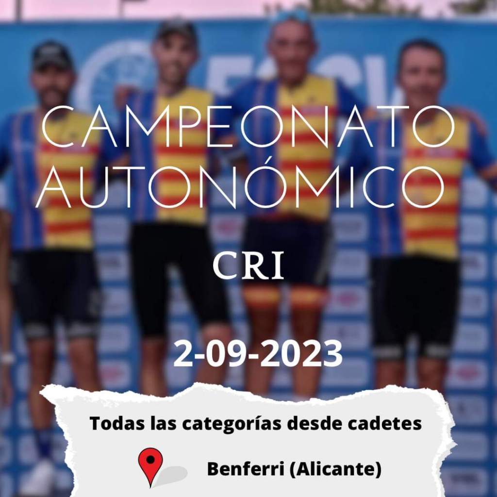 El próximo 2 de septiembre la localidad de Benferri acogerá la CRI de todas las categorías masculinas y femeninas desde cadetes. En breve se abrirán inscripciones y se facilitará más información.