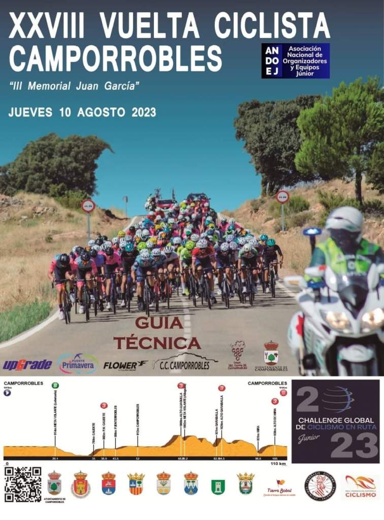 Hoy jueves, 10 de agosto, se disputa la XXVIII Vuelta Ciclista Camporrobles-III Memorial Juan García para categoría Júnior, a partir de las 10 horas. Sobre 110 kilómetros y el fuerte calor como protagonista. 24 equipos tratarán de llevar a lo más alto del podio a uno de sus corredores. La prueba es puntuable para la Challenge Global de Ciclismo Júnior en ruta.