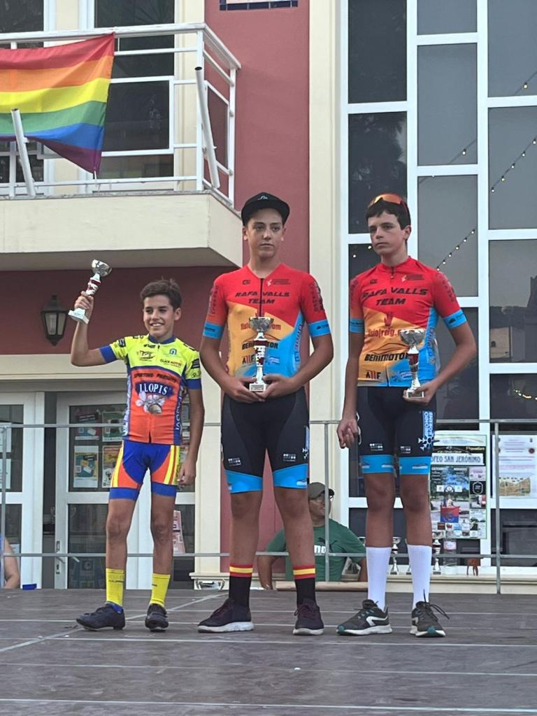 Las Escuelas de Ciclismo de la provincia de Alicante han puesto esta tarde el punto y final a una jornada deportiva diseñada en Benferri. Comenzó con las pruebas matinales de cadetes y Júniors, en las que Enrique Maranchón y Diego Gutiérrez subieron a lo más alto del podio en sus respectivas categorías. En la competición escolar, en el Trofeo San Jerónimo, triunfo del Club Ciclista San Vicente, por delante del CC Rafa Valls y del CC Almoradí.