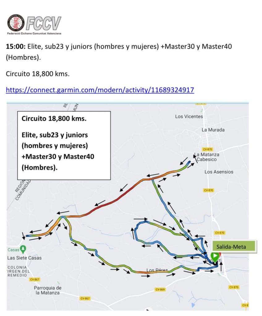 El Club Ciclista Benferri organiza el próximo 2 de septiembre el Campeonato Autonómico de CRI, desde la categoría cadete, que se disputará en la localidad de la Vega Baja. Ya se conocen los horarios de las carreras que comenzarán a las 9 horas y los trazados.
