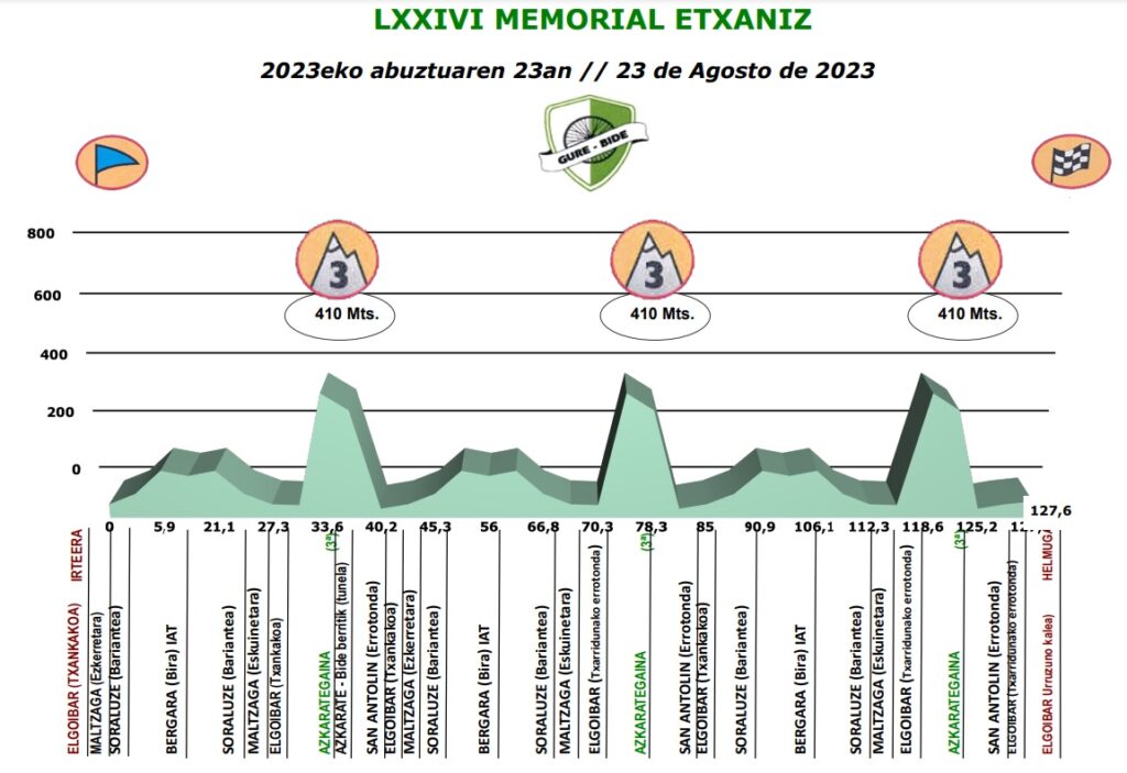 Hoy miércoles, en Elgoibar, se realizarán las tres ascensiones al puerto de Azkarategaina donde se vivirán los momentos decisivos y se seleccionará el grupo que se dispute el triunfo en el LXXV Memorial Etxaniz.