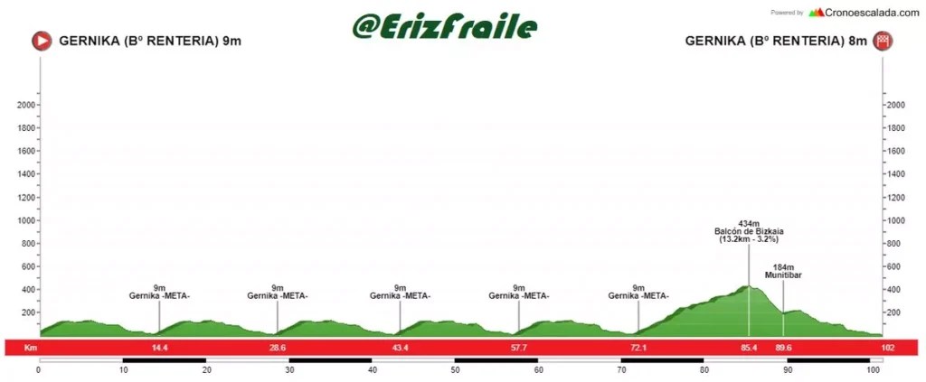 Al día siguiente, en Gernika, el LXXI San Bartolomé Sari Nagusia mantendrá su tradicional circuito donde recorrerán cinco vueltas sin grandes dificultades donde si no cuajan ataques o emboscadas se prevé como una de las oportunidades para los corredores más rápidos.