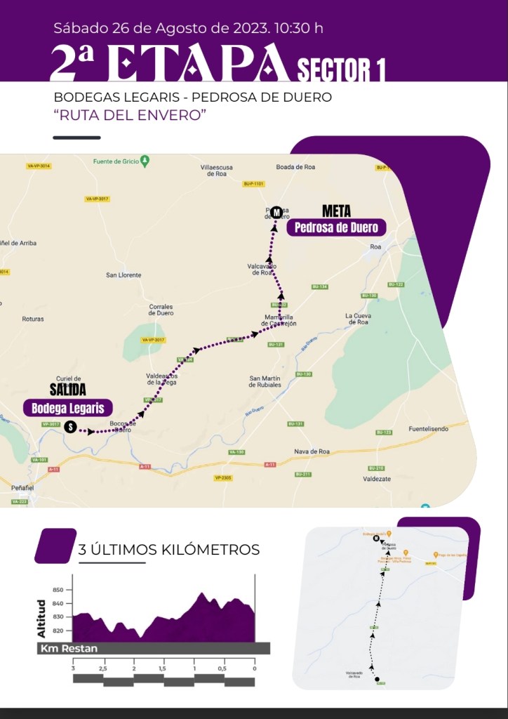 El sábado 26 se disputarán dos sectores en una jornada denominada “Ruta del Envero”. En el primero se recupera la Contra-Reloj por Equipos ausente en el programa de la edición anterior, y disputándose en la mañana entre Bodegas Legaris y Pedrosa de Duero, con un recorrido de 17,4 kilómetros. El primer equipo saldrá a la carretera a las 10:30 h. y la meta estará ubicada frente a la iglesia de Nuestra Señora de la Asunción, en Pedrosa de Duero. El Gran Premio del Sector será Bodegas Legaris.