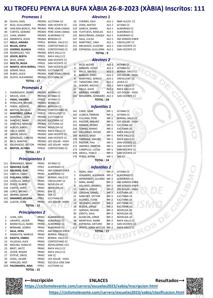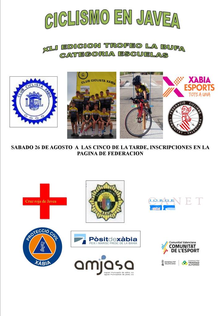 El sábado, día 26 de agosto, a las 17 horas, se disputa en Jávea el XLI Trofeu Penya La Bufa de Escuelas. La prueba es puntuable para la Challenge de la provincia de Alicante. En total se han inscrito 111 escolares.
