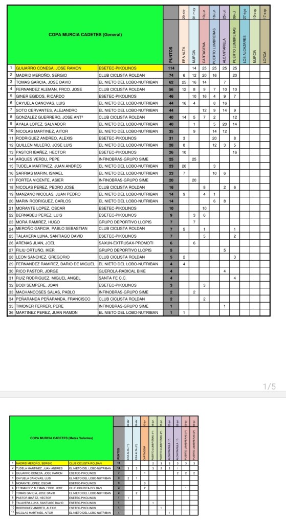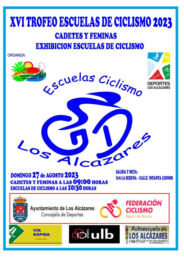 El domingo, 27 de agosto, José Ramón Guijarro defiende en Los Alcázares, a partir de las 9 horas, el liderato de la Copa Murcia Cadetes, en la XVI Trofeo Escuelas de Ciclismo 2023. El corredor del Esetec Pikolinos suma cuatro victorias consecutivas en dicho torneo tras imponerse en Cartagena, Puerto Lumbreras, Alcantarilla y de nuevo en Puerto Lumbreras. Presencia también de los equipos Saxun-Extrusax Primoti y GD Llopis. Lista de inscritos