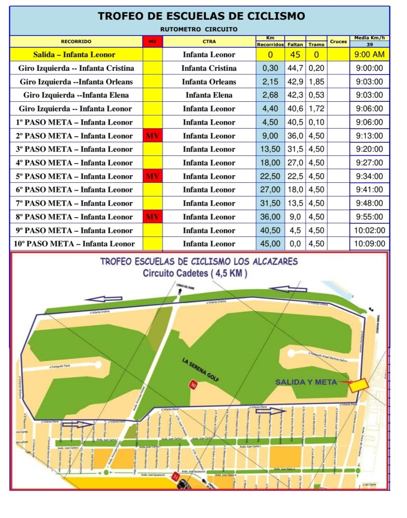 La organización ha diseñado un circuito de 4,5 kilómetros en la Urbanización La Serena hasta completar los 45 que deberán recorrer los ciclistas cadetes.