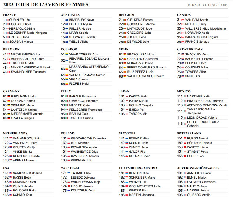 La carrera se compondrá de una primera etapa de contrarreloj individual, una segunda llana y tres últimas jornadas, sobre todo las dos últimas, de perfil claro para las mejores escaladoras del pelotón sub23 internacional. Lista de participantes