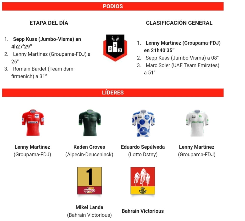 El ciclista estadounidense del Jumbo-Visma ha ganado este jueves la sexta etapa de La Vuelta 2023, en el Observatorio Astrofísico de Javalambre y el corredor francés del Groupama-FDJ se ha enfundado el maillot rojo