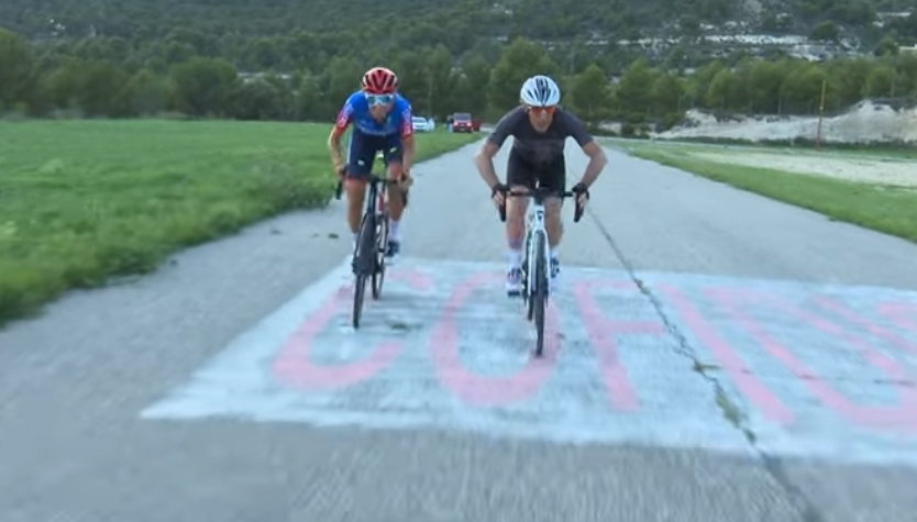 La cicista alicantina Sandra Alonso (Ceratizit) ha sido la protagonista del reportaje de Pedro Delgado que ha presentado el final de la octava etapa de La Vuelta 2023 que se disputará mañana por carreteras de la provincia de Alicante y que finalizará en el ya mítico Xorret de Cati. En el esprint final, Sandra ha entrado por delante de Delgado.
