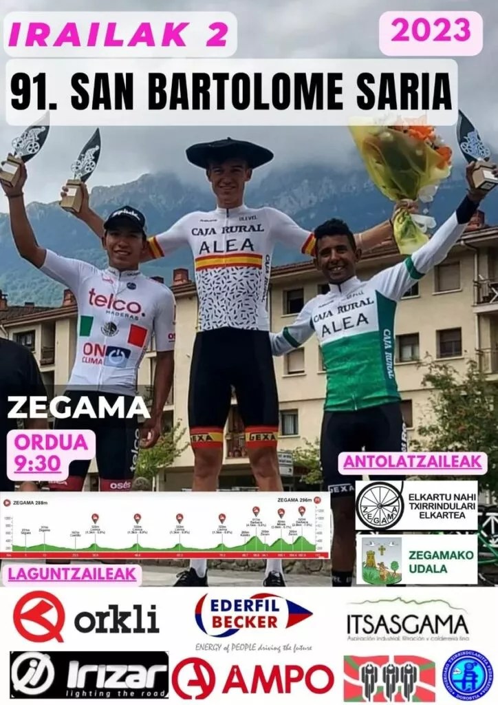 Hoy se disputa la 91 edición de la San Bartolome Saria de Zegama, prueba puntuable del Torneo Lehendakari, a partir de las 9.30 horas. Ander Ganzábal (Laboral Kutxa-Fundación Euskadi) liderá dicha competición. En la parte final final del trazado se ha introducido un segundo ascenso a Barbaris y la inclusión del alto de Minas. El pelotón tendrá por delante 107 kilómetros. Destacar la presencia en el pelotón de Marc Cabedo (Telcom) y Tomás Miralles (Essax).