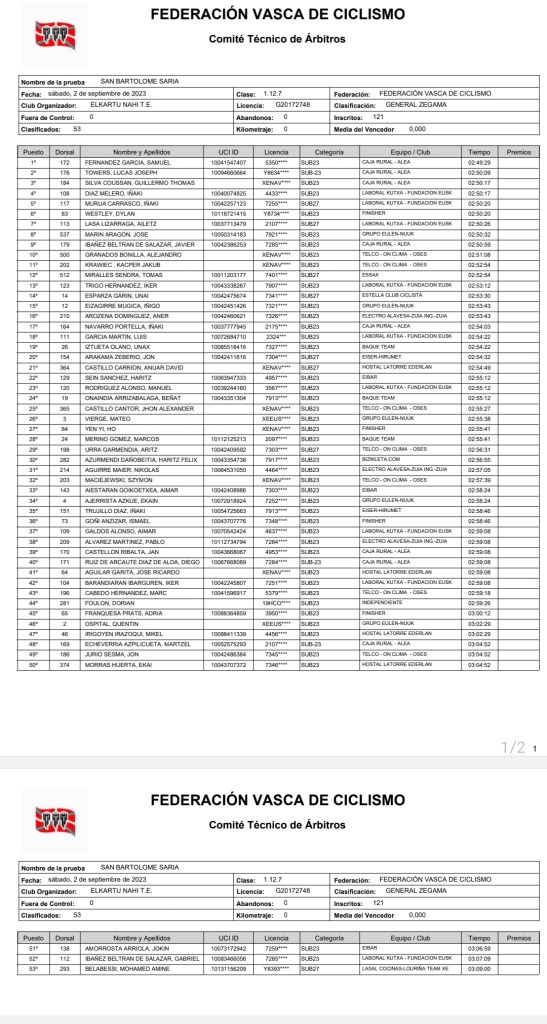 La ascensión definitiva a Barbaris sirvió para que el asturiano soltara definitivamente a su rival y acabar alzando los brazos en meta. Por detrás, tanto Towers como Silva llegaron para completar el podio y rematar una gran mañana de ciclismo en el Torneo Lehendakari.