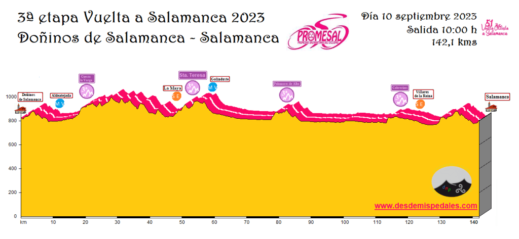 Etapa 3 – 10/09/2023. Doñinos de Salamanca > Salamanca 142,1 KM. 10.00h. Rutómetro
