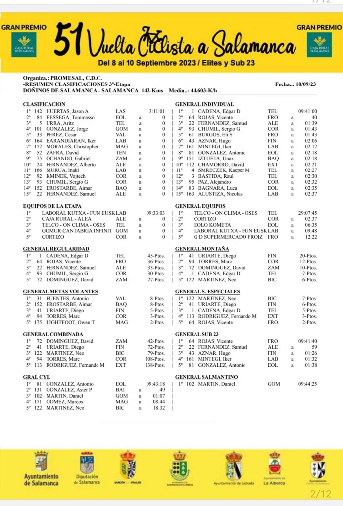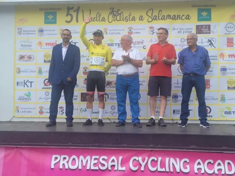 El Telco. ON Clima Osés no falla en su cita con la Vuelta Ciclista a Salamanca y se adjudica por tercera vez consecutiva la clasificación general de la mano de Edgar Cadena. El mexicano, que ya se impuso el año pasado, se ha mostrado muy fuerte y regular durante las tres etapas para conseguir el amarillo. Además, el conjunto navarro también se ha alzado con la clasificación por equipos en una gran actuación colectiva.