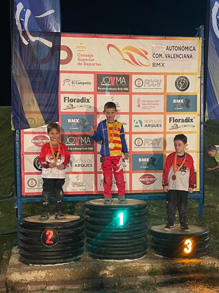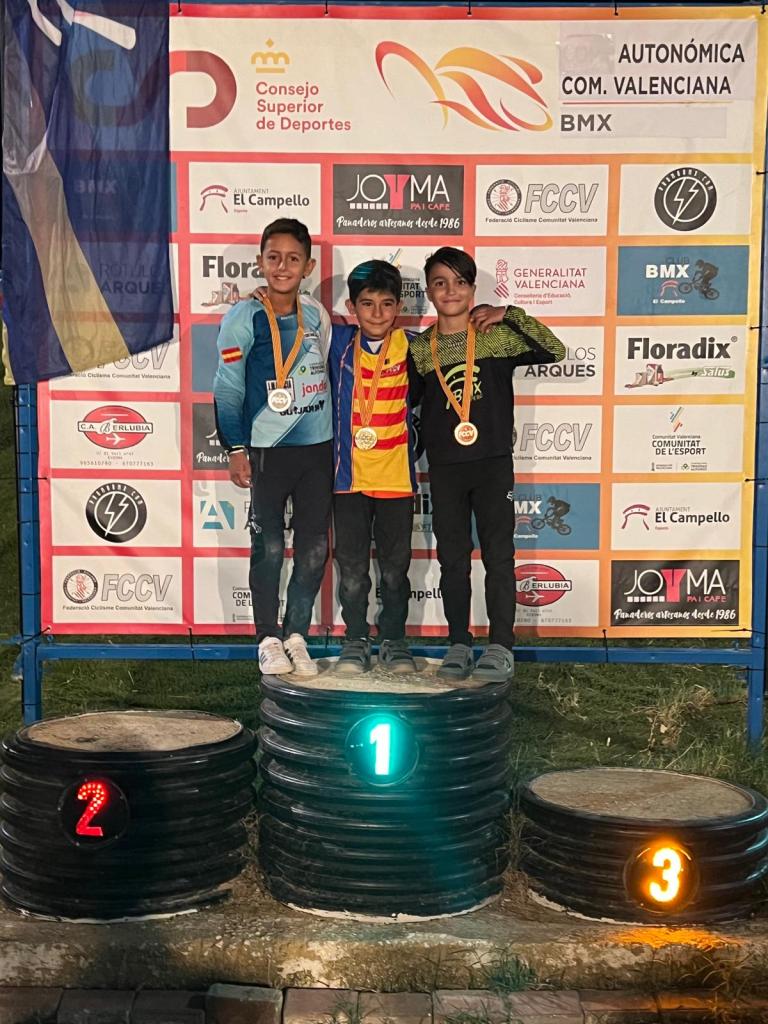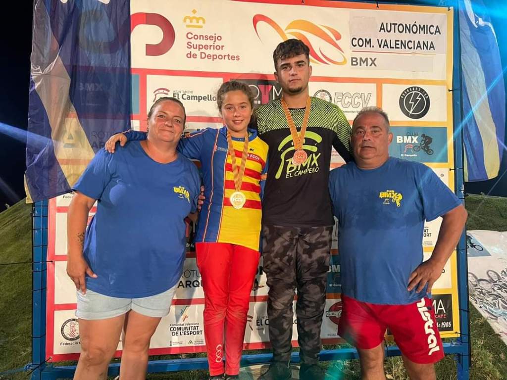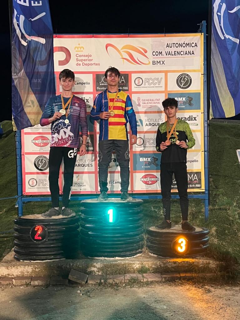 El Polideportivo El Vincle de El Campello vistió el sábado a los nuevos campeones autonómicos de BMX. Ryan Oks (BMX San Vicente) se impuso en la categoría Promesas 5 y 6; Julia Smith (El Campello) y Marc Carbonell (BMX Alcoy), en Promesas 7 y 8; Marcos Pastor (El Campello) y Carla Lozano (BMX Alicante), en Principiantes; Eric Bordería (BMX Alcoy) y Paula Santonja (BMX Alcoy), en Alevines; Belén Calvo (El Campello) y Daniel García (Bike Park Costa Blanca), en Infantiles; Rodrigo Manuel Díaz (Bike Park Costa Blanca) y Sofía Belén Bull (Bike Park Costa Blanca), en Cadetes; Raúl Saorín (El Campello), en Hombres 30 a 39; Miguel Ángel Pérez (Benidorm BMX), en Hombres 40 a 49; Arnau Bordería (BMX Alcoy), en Challenge 17 a 29; y Alejandro Verdú (Bike Park Costa Blanca), en júniors.