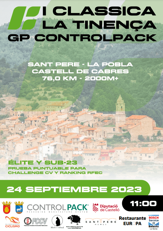 El domingo, 24 de septiembre, se pone el punto y final a la Challenge Élite y Sub23 de la Comunidad Valenciana. Los municipios de La Tinença, con La Pobla de Benifassà, El Ballestar y Castell de Cabres acogerán la primera edición de I Clàssica La Tinença GP-Controlpack. Nacho González (High Level-GSport) llega como líder de la Challenge de la CV en la categoría élite; Lucan Serban (High Level-Gsport), en sub 23; Domingos Werik (Valverde Team) lidera la clasificación de las Metas Volantes;y, Adrián Albiach, la de la Montaña. Lista de inscritos.