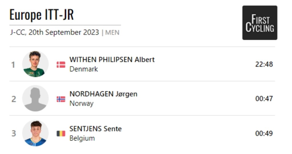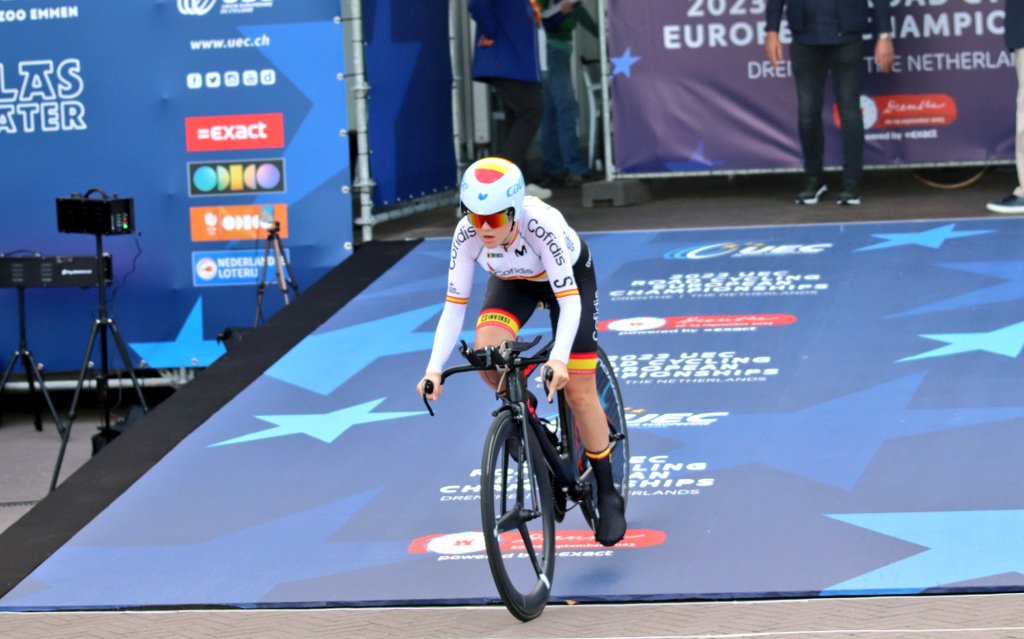 Enorme actuación de Markel Beloki para ser 7° en la CRI junior del Europeo con un tiempo de 23’59» que ha comenzado a disputarse hoy en Drenthe. El ganador ha sido el danés Philipsen con un crono de 22’48». El alicantino Héctor Álvarez ha sido 21° con 24’26» y Adriá Pericas, 46° con 25’17».