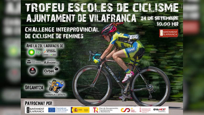 El domingo, 24 de septiembre, Vilafranca pone el broche final a la primera edición d la Challenge Interporvincial de Féminas Alevines e Infantiles de la Comunidad Valenciana. La sexta prueba del Torneo, organizada por el CC MTB Animals de Monte, dará comienzo a las 10:00 horas. También participarán en la competición todas las categorías de las escuelas de Castellón.