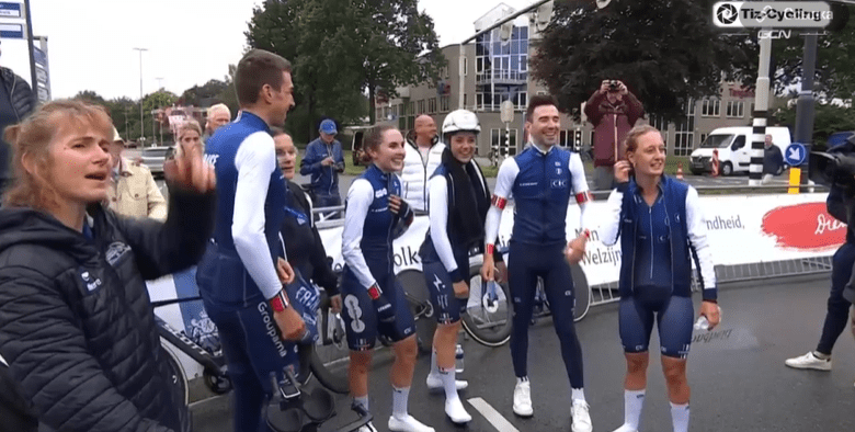 Después de los Júnior, fueron los corredores de las categorías Elite los que disputaron este jueves por la tarde el relevo mixto del Campeonato de Europa . A lo largo de 38,4 kilómetros de un recorrido extremadamente suave, un duelo enfrentó a Italia contra Francia… ¡y fueron los franceses quienes se llevaron el premio mayor! En segundo lugar, 20 segundos después del paso de los hombres (Bruno Armirail, Rémi Cavagna y Benjamin Thomas), el equipo francés inclinó la carrera a su favor gracias al trío femenino compuesto por Juliette Labous, Audrey Cordon – Ragot y Cédrine Kerbaol . Al final, el colectivo francés ganó con cuatro segundos de ventaja sobre los transalpinos. Alemania ha sido tercera, a 43 segundos.