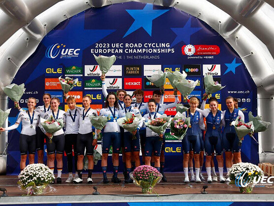 Italia ganó este jueves en Emmen (Países Bajos), en el Campeonato de Europa, la contrarreloj de relevos mixta júniors. El podio lo completan Alemania y Francia. El tiempo del ganador fue de 48 minutos y 14 segundos. Aventajó en 25 y 34 segundos, respectivamente, a la selecciones que le han acompañado en el podio.