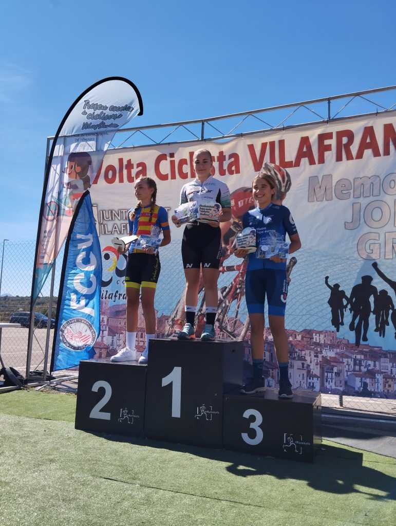 En el Trofeu Escoles de Ciclisme de Vilafranca, última jornada del Torneo femenino, disputado hoy Valeria Coloma se ha impuesto en Alevines 1; Jimena Gas, en Alevines 2; Nayara Ibáñez, en Infantiles 1; y Debora Miravet (Ángel Vicioso), en Infantiles 2. En la Gymkana, triunfos de Carla Gómez y Amanda Miravet (Ángel Vicioso), en las categorías alevín e infantil, respectivamente.