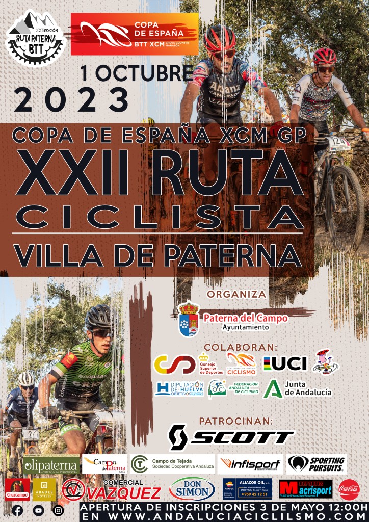 La Copa de España de BTT Maratón, tras un largo parón veraniego, regresa a la competición con la celebración este próximo domingo 1 de octubre de la XXII Ruta Ciclista BTT-Villa de Paterna. La prueba onubense, que tendrá como epicentro la localidad de Paterna del Campo, que acogerá la salida y meta de la carrera, será la cuarta cita de la Copa de España de Maratón 2023 y se antoja absolutamente clave para decidir la general del circuito. Tras la disputa de la XXII Ruta Ciclista BTT-Villa de Paterna tan solo restará por celebrarse el XIII Maratón BTT Sierra de Cazorla, que estaba previsto para el 3 de septiembre, pero tuvo que ser aplazado por la DANA.