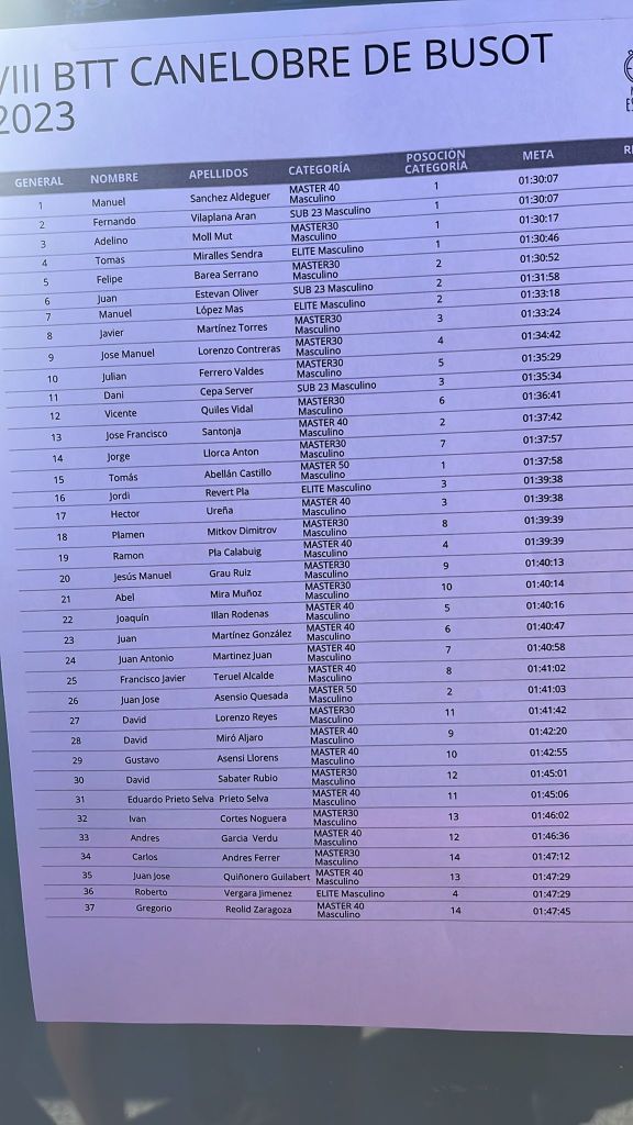 Lloret ha tenido a su lado en los cajones a Laia Alborch (Gsport) y Rosa Alba (Mundobike). Fernando Vilaplana ha sido el mejor en Sub 23, con Juan Estevan (Gsport), segundo; y, Dani Cepa (Filial Caja Rural), tercero.