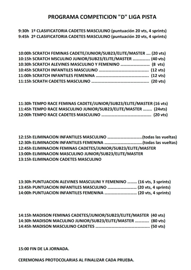 Calendario de la CV de pista