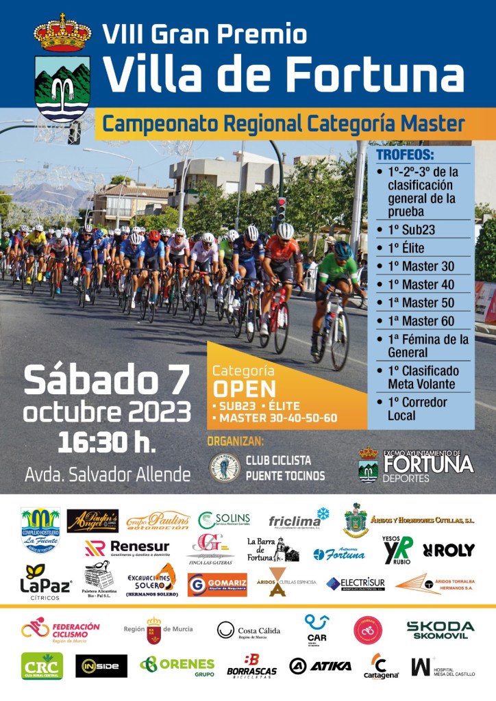 El sábado, 7 de octubre, se disputa, a partir de las 16.30 horas, el VIII Gran Premio Villa de Fortuna, categoría Open, que vestirá a los nuevos campeones autonómicos de la categoría Máster. Lista de inscritos.