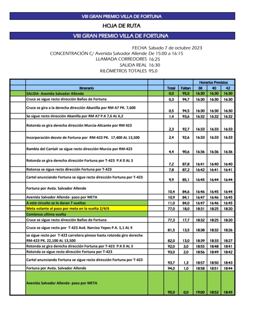 - Fecha Celebración: 07/10/2023 Hora Salida: 16:30