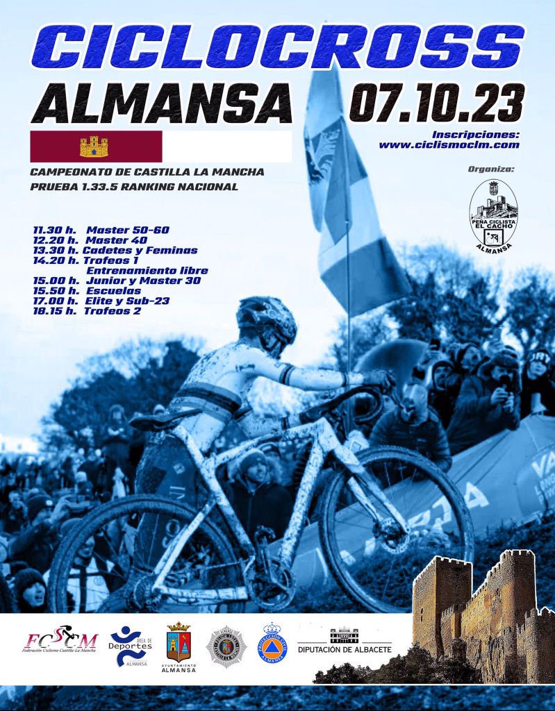 Más de doscientos ciclocrosistas llegados de toda España se darán cita este sábado 7 de octubre en Almansa (Albacete) para participar en la primera de su Ciclocross Castillo de Almansa, Campeonato de Castilla-La Mancha 2023 de la modalidad y puntuable para el ranking nacional. Todo un éxito de convocatoria en su estreno en el calendario regional, tras el que está el trabajo organizativo de la Peña Ciclista El Cacho.