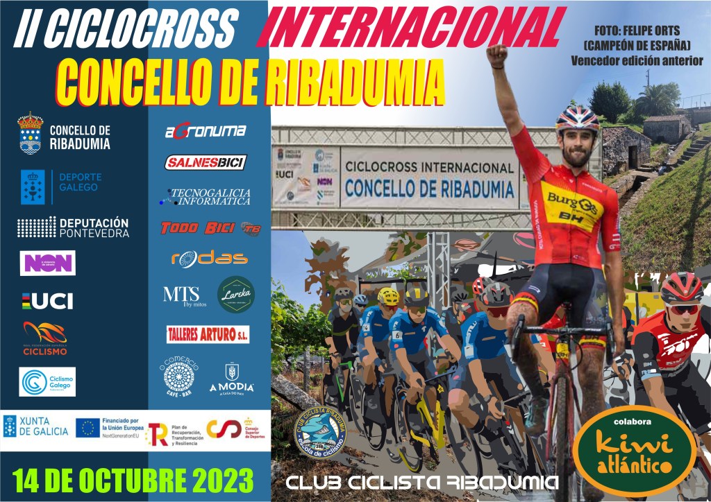 Desde las 10.30 horas, y a lo largo de todo el sábado, 14 de octubre, se irán sucediendo las salidas de la segunda edición del Ciclocross Internacional Concello de Ribadumia que reunirá a cerca de 400 participantes entre los que se encontrarán los mejores corredores de Europa tanto masculinos como femeninos.Además de una nómina de participación extranjera que alcanzará los ochenta corredores, por el segundo Ciclocross Internacional también pararán los mejores ciclistas nacionales. Son los casos de Felipe Orts, ganador de la primera edición o Kevin Suárez junto a la actual campeona de España Lucía González o Sofía Rodríguez. También acuden a la cita gallega los Sub 23 Raúl Mira (AM Sonido) y Vania Rico (AM Sonido) y el júnior David Ivars (Grupo de la Safor). Lista de inscritos.