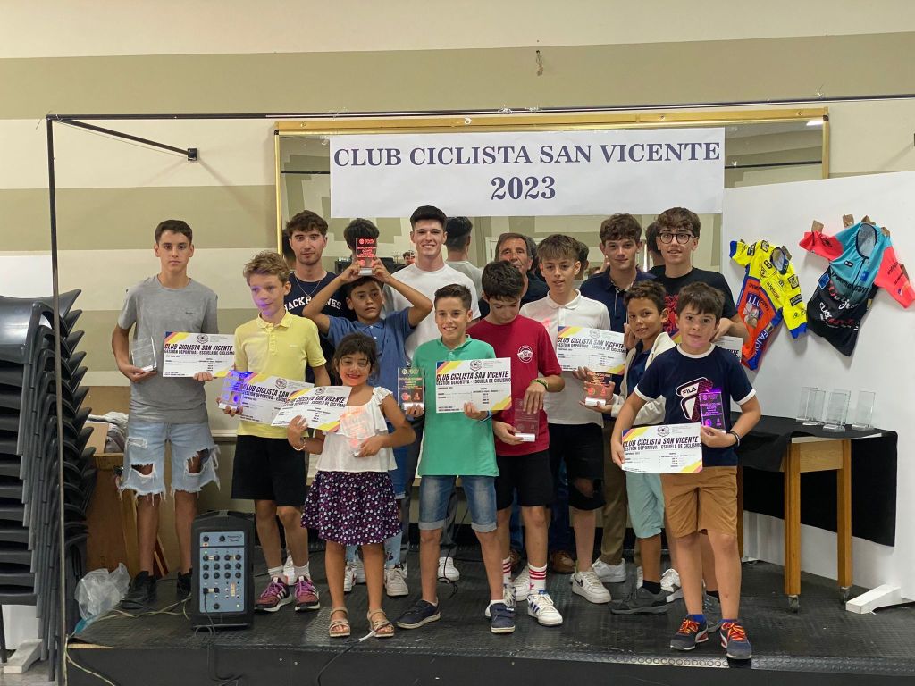 Los equipos cadetes, júniors y la Escuela del Club Ciclista San Vicente celebraron el restaurante Miguel de Agost la comida de final de temporada. Resultó un encuentro muy ameno en el que se realizó una mención a los componentes de la Escuela que consiguieron la tercera plaza en la Challenge Provincial en 2023. También se homenajeó a los cadetes, Óscar Orts, Alejandro Callado y Francs Llorca, que consiguieron ser campeones de España de persecución por equipos representando a la FCCV.