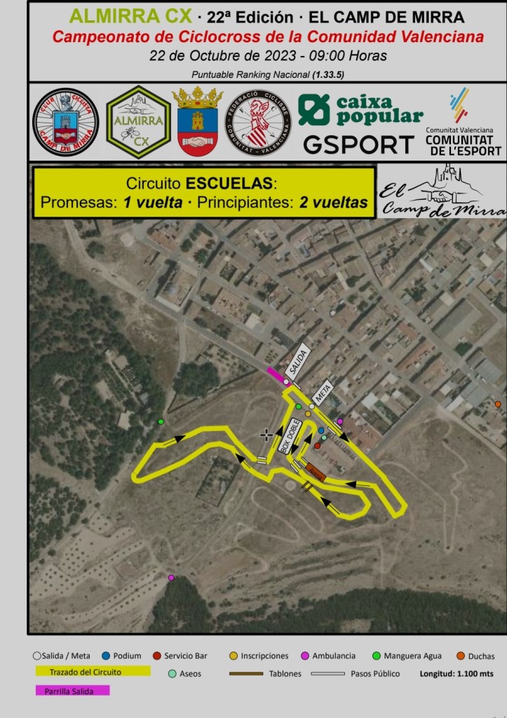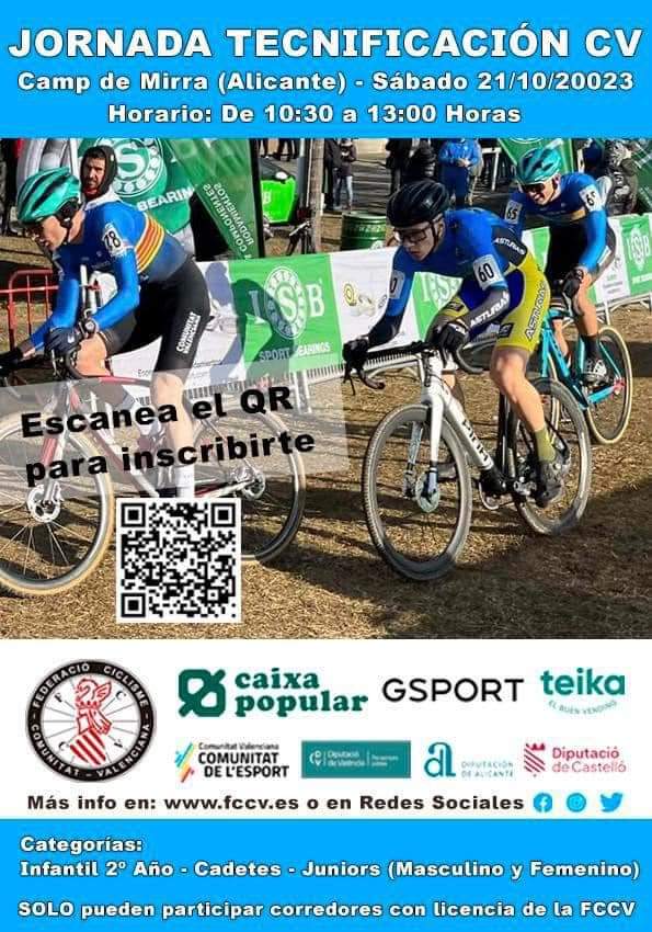El sábado por la mañana está prevista una Jornada de Tecnificación de CX, en el circuito de EL Camp de Mirra donde el domingo se pondrán en juego los campeonatos autonómicos. Está dirigido a las categorías Infantil de 2º, Cadetes y Júniors, hombres y mujeres.
