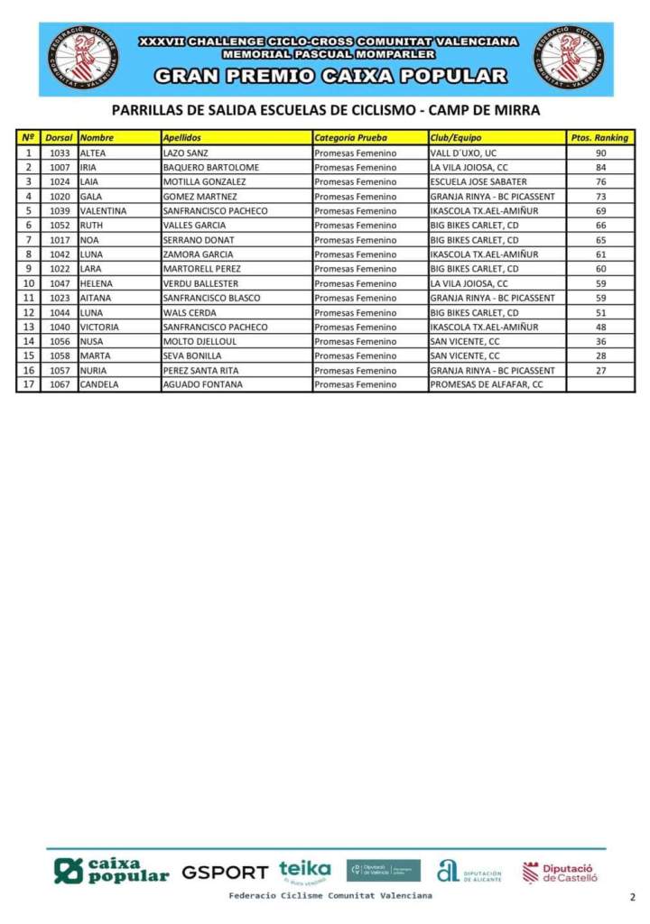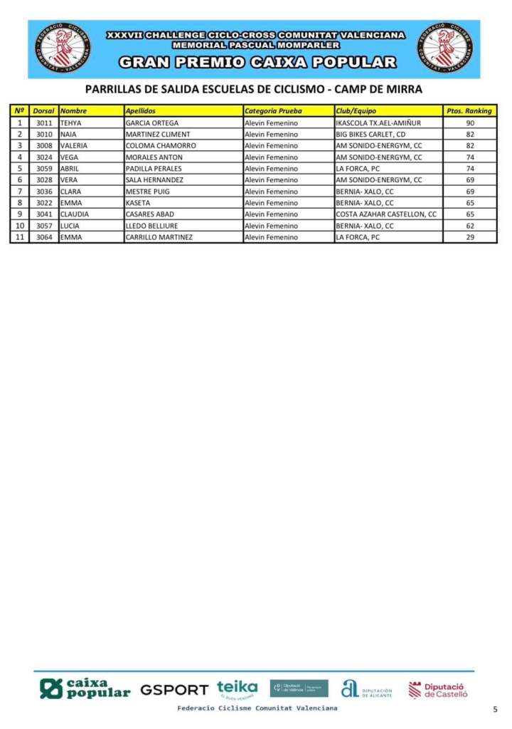 EXCEPCIONALMENTE y solo para el campeonato, en las categorías de Escuelas de Ciclismo, se confeccionarán dos parrillas separadas una de hombres y otra de mujeres y se les dará la salida con 1’ de diferencia entre ellos. Todo ello en aplicación de los criterios de igualdad y justicia deportiva.