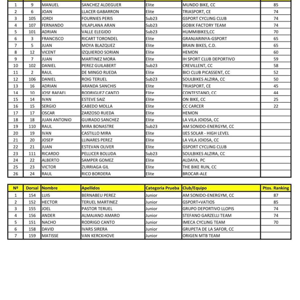 Artículo 17º de la Normativa de Ciclo-Cross de la FCCV: