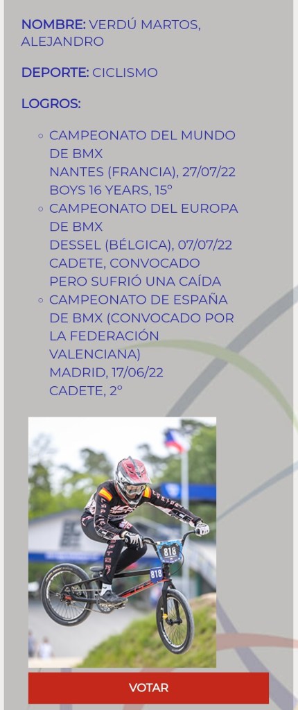 A través de este enlace, se puede votar al deportista o la deportista más popular de la provincia de Alicante (Entre los que se encuentran los siete ciclistas citados), entre todos/as aquellos/as que han decidido presentar candidatura. Lo que quiere decir que, de esta votación a través de la web solo saldrá un/a ganador/a.