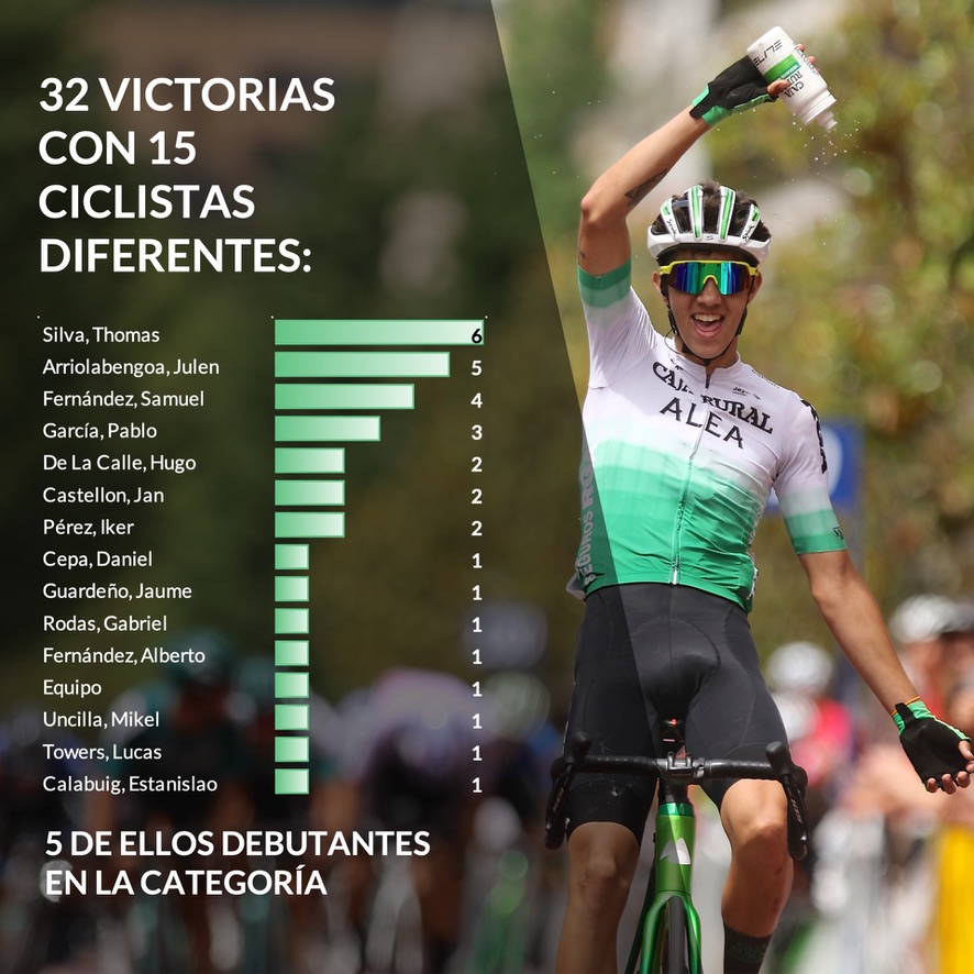 Hasta quince ciclistas de Filial Caja Rural-Alea se repartieron los treinta y dos éxitos del equipo, demostrando también el elevado nivel medio del grupo, destacando los seis del campeón uruguayo Thomas Silva, los cinco de Arriolabengoa y los cuatro de Samu Fernández.