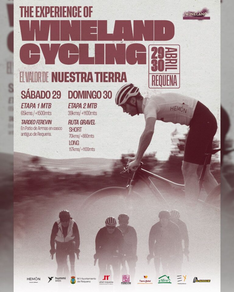 Wineland Cycling Experience llega a Requena el 28 y 29 de octubre. Una nueva prueba de MTB y gravel que recorrerá parajes increíbles y llevará a los participantes por los viñedos recién vendimiados que dan cuerpo a los vinos de la D.O. Utiel-Requena. Esta nueva prueba de ciclismo de montaña, que aúna enoturismo y deporte, permitirá a los asistentes disfrutar de un fin de semana rodeados de naturaleza, gastronomía y los mejores vinos en Requena, a 60 km de València.