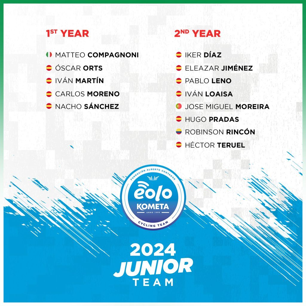 La formación que ha competido esta temporada bajo la divisa EOLO-KOMETA Cycling Team contará con una plantilla de trece ciclistas, dos menos con respecto a este 2023, en la que hasta ocho corredores serán de segundo año y tendrá tres ciclistas extranjeros. La formación juvenil de la Fundación Contador, que estará dirigida por el manchego Isaac Cantón en la que será su dodécima temporada de existencia, mantiene a su plantel al bilbaíno Iker Díaz, al extremeño Pablo Leno, al granadino Iván Loaisa y al madrileño Hugo Pradas.