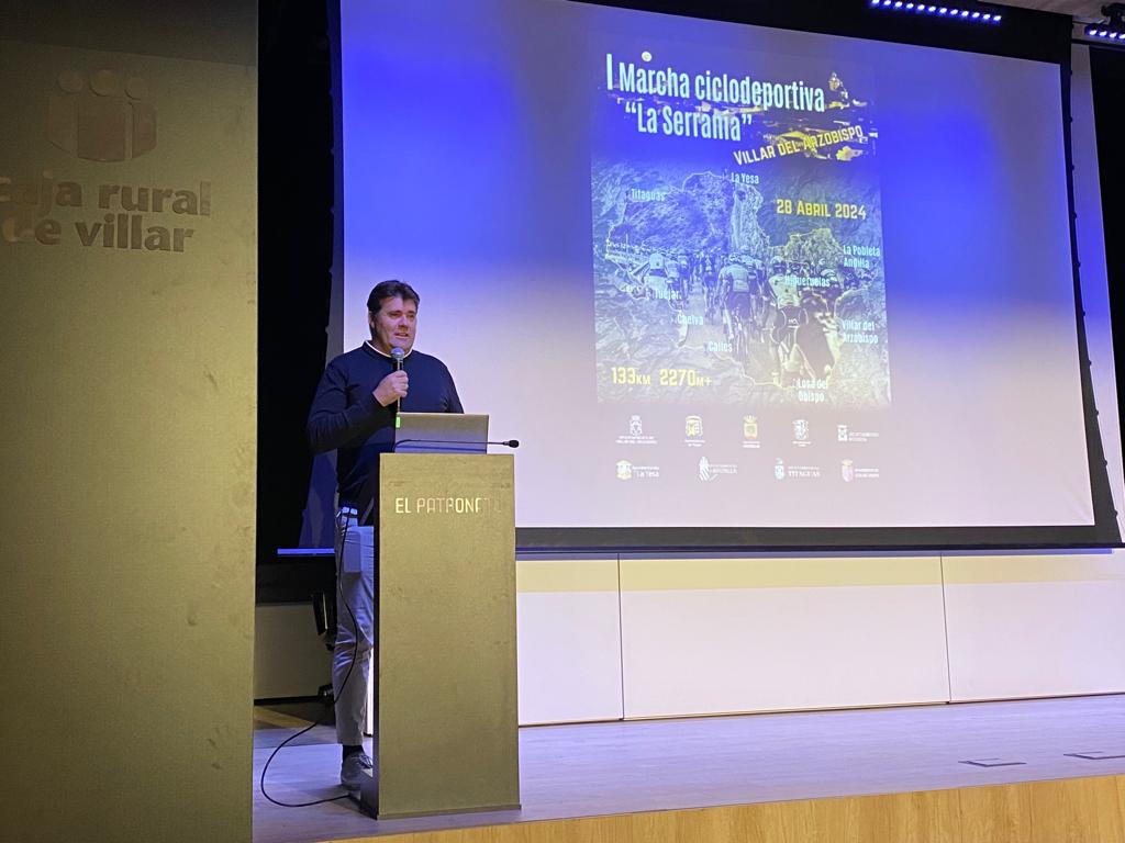 Hoy se ha presentado en la Fundación Caja Rural de Villar del Arzobispo «Patronato» la I MARCHA CICLODEPORTIVA LA SERRANÍA que se disputará el 28 de abril organizada por Óscar Fabregat, la UC Villar y los ayuntamientos de la Comarca de Los Serranos. Contará con 133 kilómetros y un desnivel positivo de 2.270 metros.