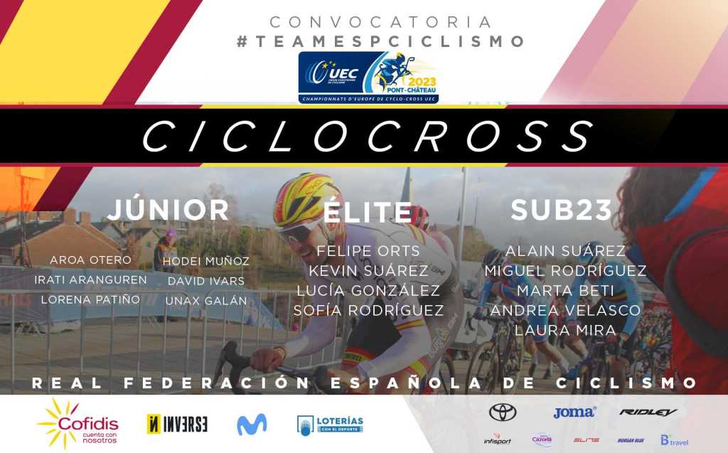 Entre los sub23, defenderán el maillot de la selección española Andrea Velasco, Laura Mira, Marta Beti, Miguel Rodríguez y Alain Suárez, mientras que como juniors acudirán David Ivars, Hodei Muñoz, Unax Galán, Aroa Otero, Irati Aranguren y Lorena Patiño.